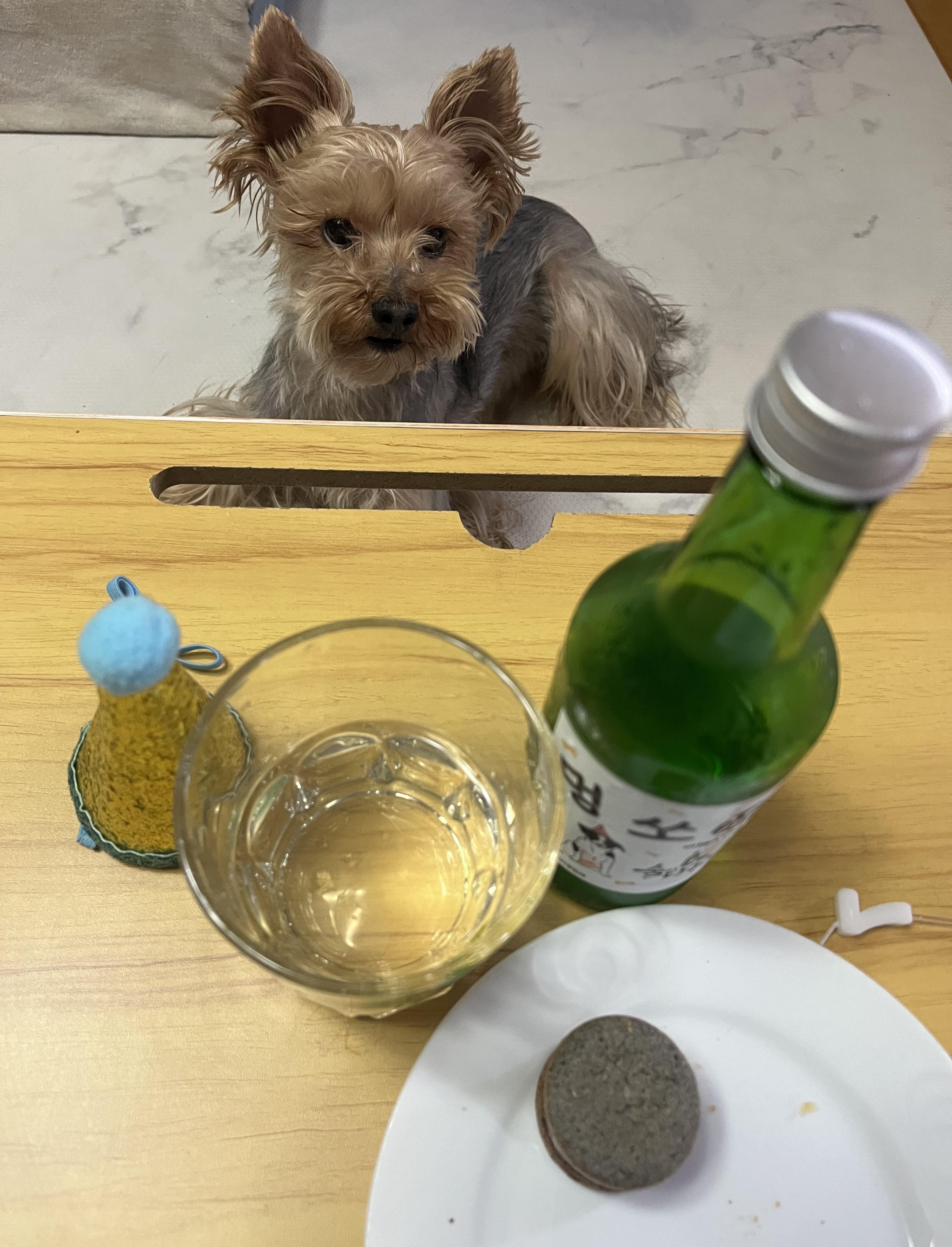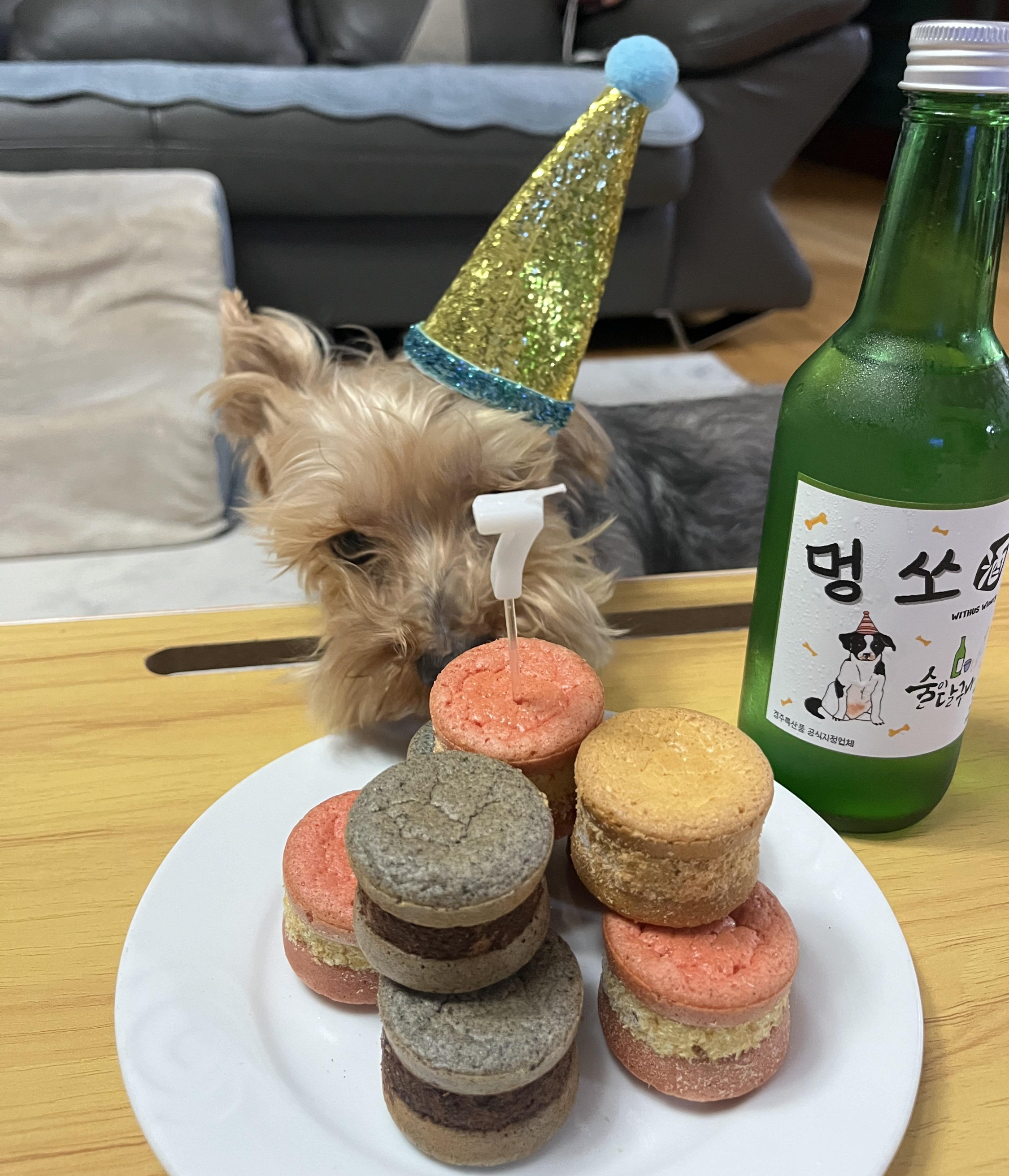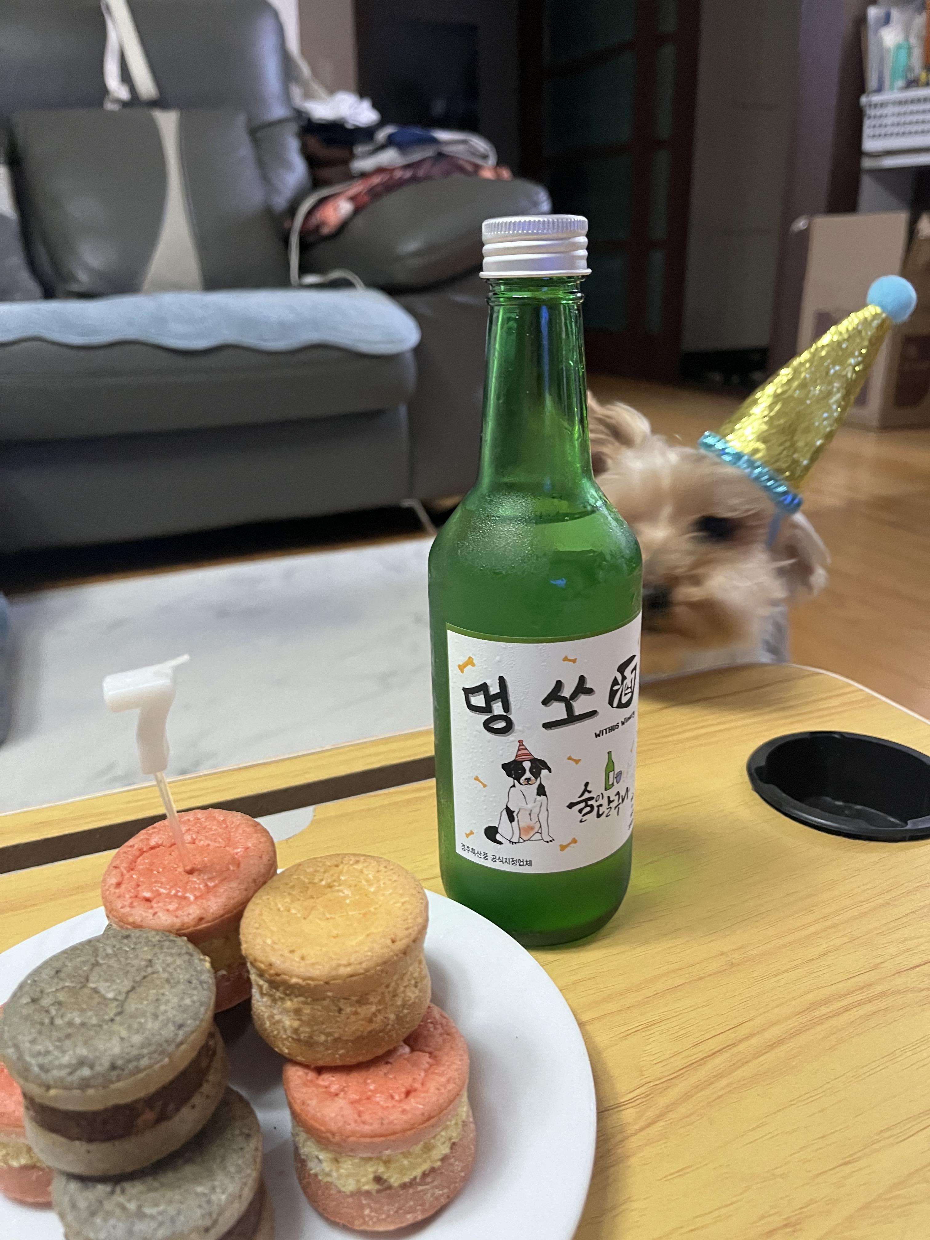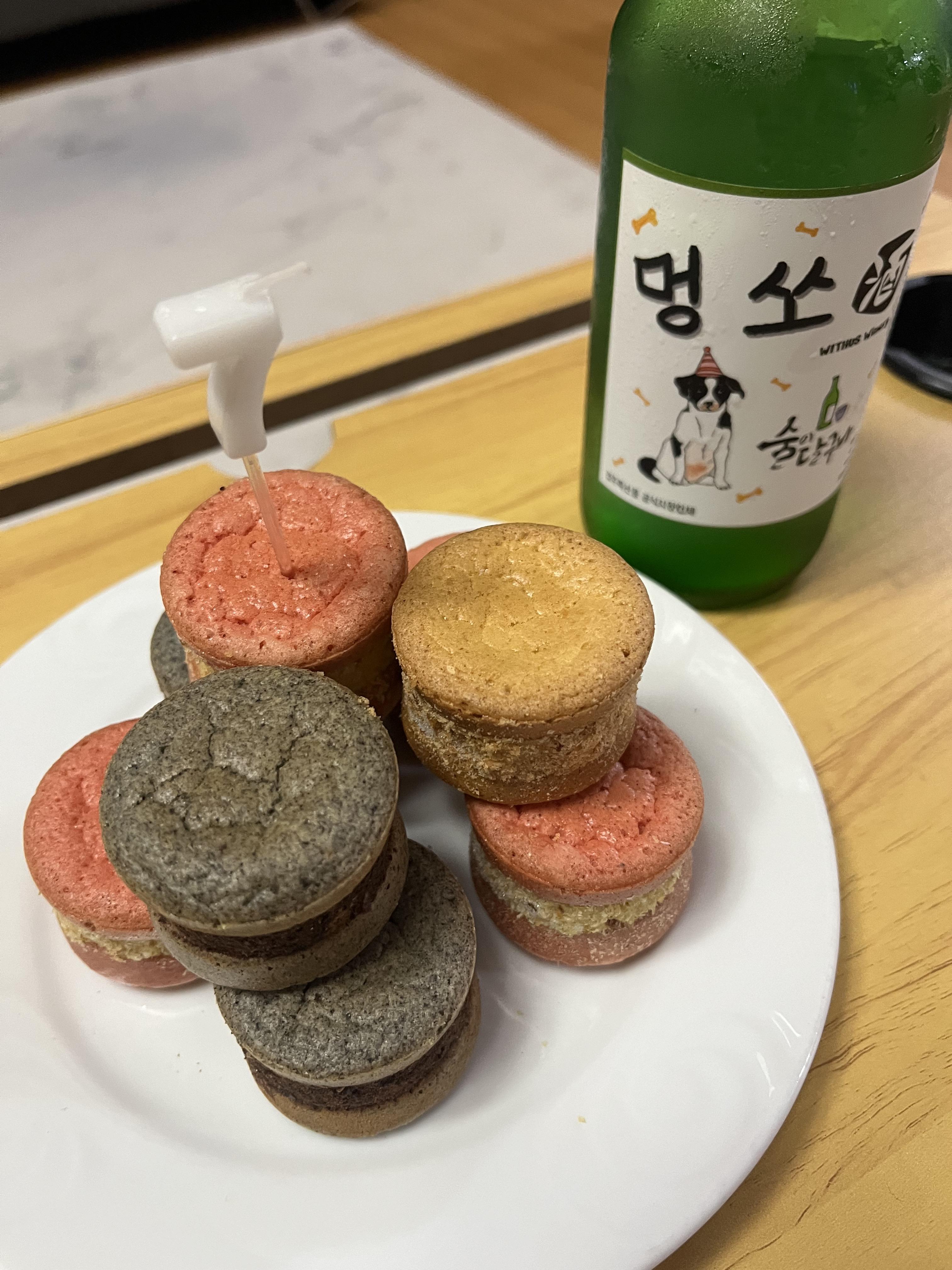 강아지 마카롱 8개(9개 구매할 걸 후회했어요), 멍소주 1병 구매하여