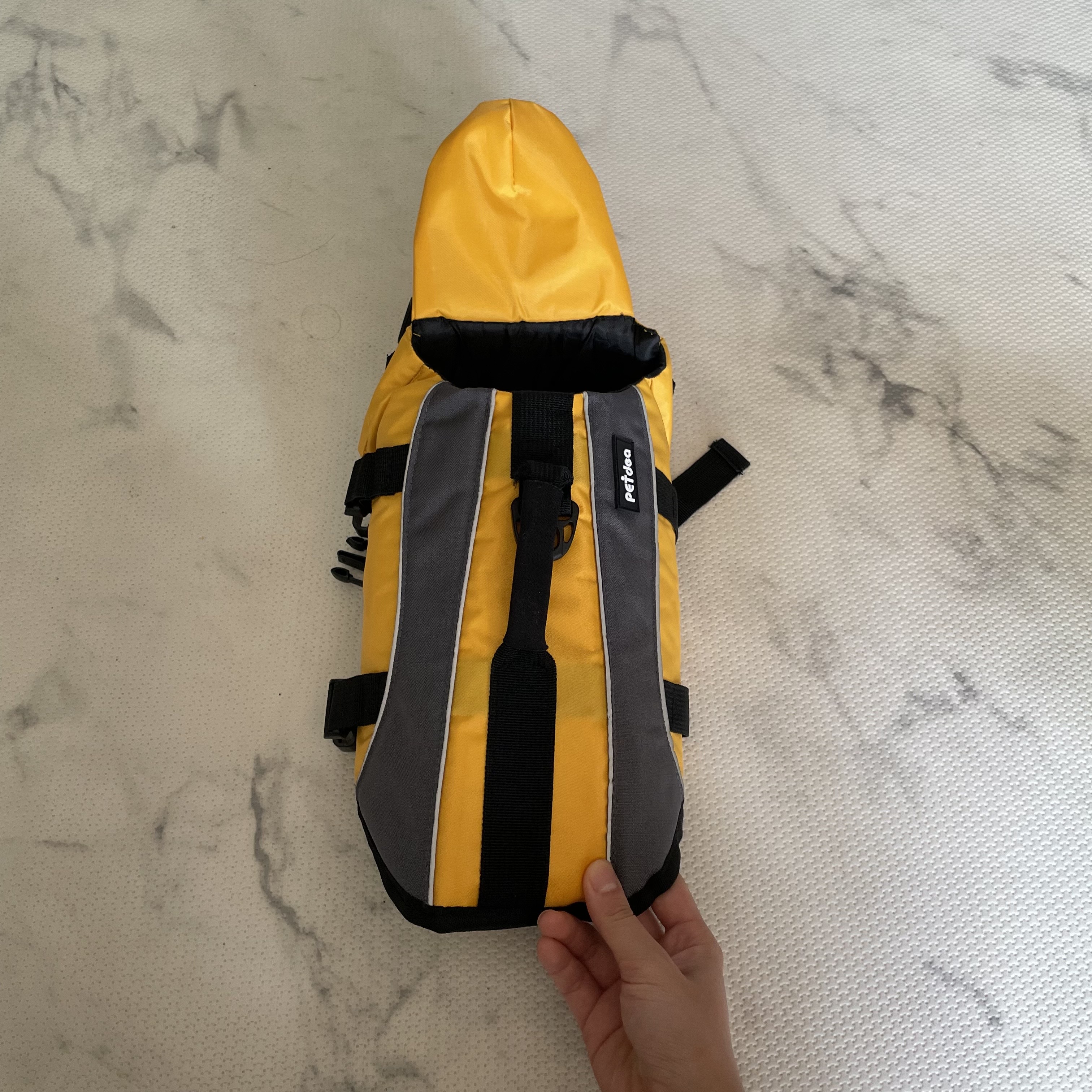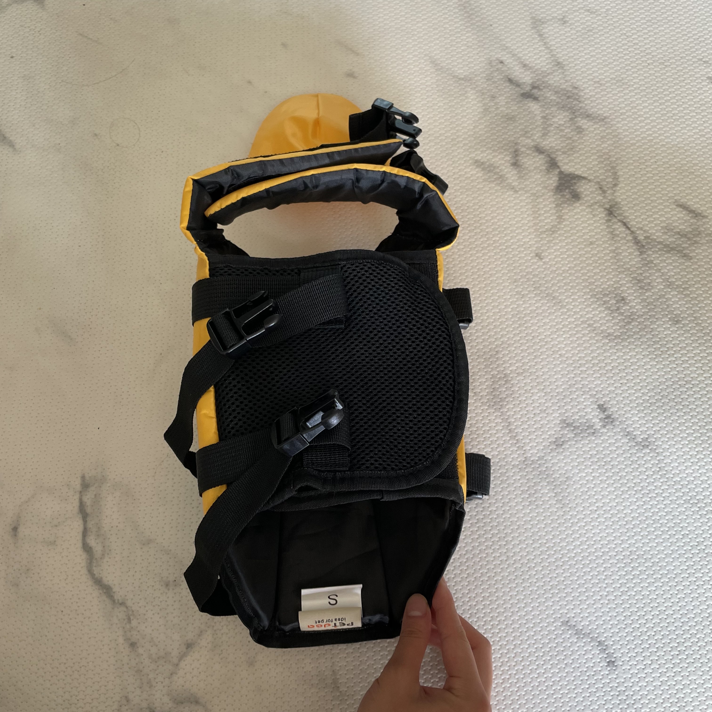 저희 여름이 털 색과 어울리는 노란색 구명조끼로 구매를 했어요