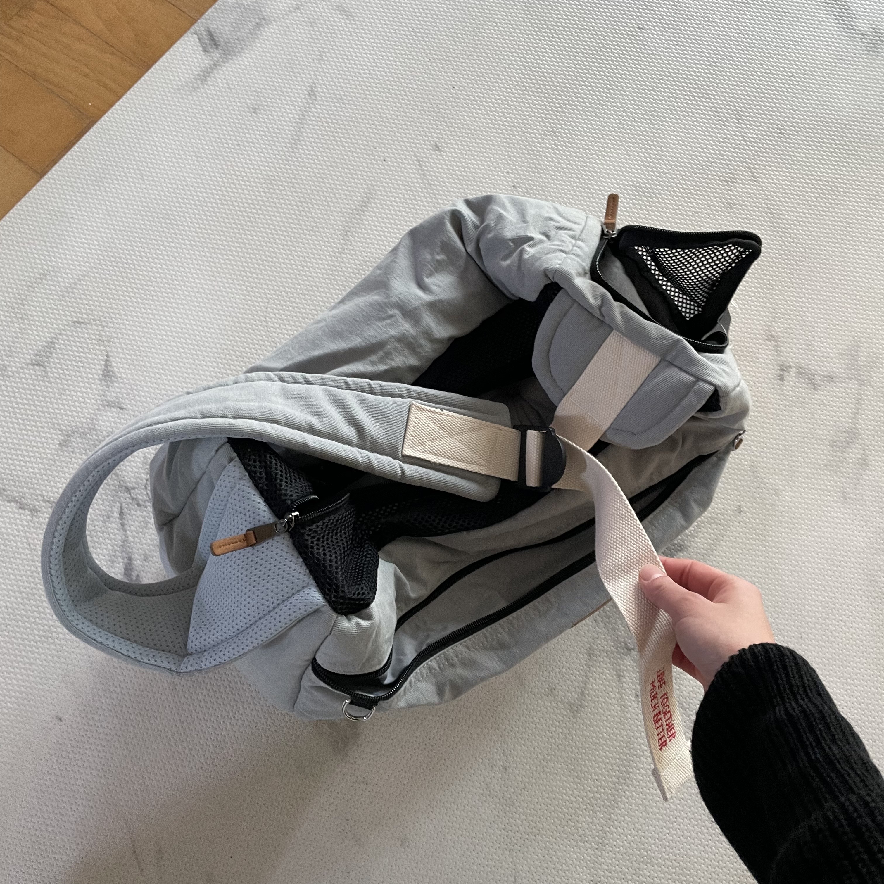 이 강아지 이동가방 슬링백은 따로 다른 가방을 가지고 다니지 않아도 된다는 장점이 있었어요
